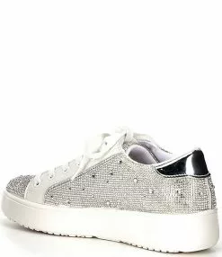 From Steve Madden, the Blade-R Rhinestone Platform Sneakers feature:
