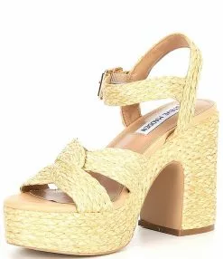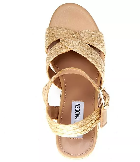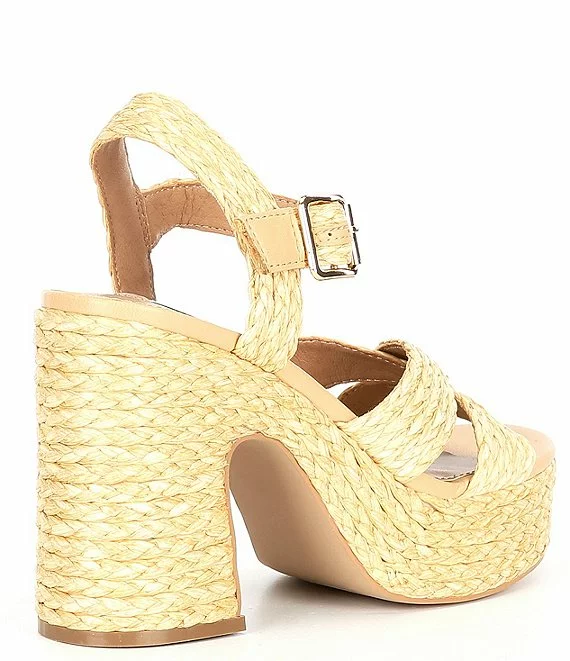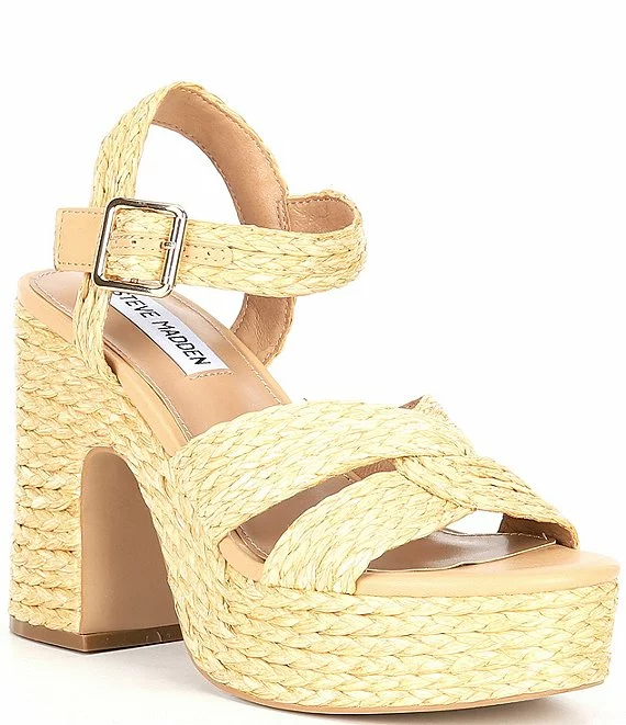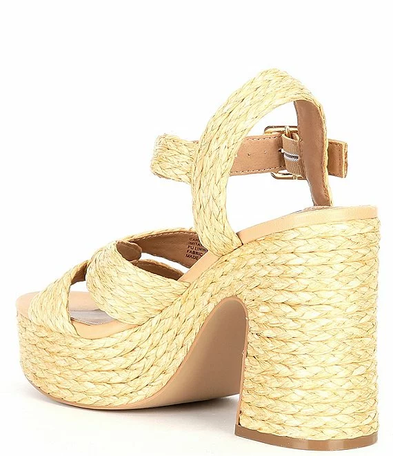 From Steve Madden, the Carisma Raffia Platform Sandals feature: