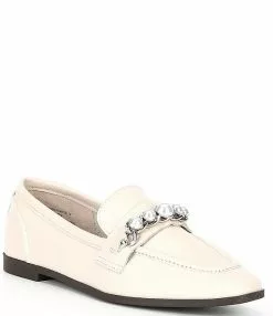 From Steve Madden, the Carrine Leather Pearl Chain Loafers feature: