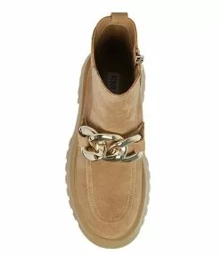 From Steve Madden, the Cleo Suede Chunky Chain Lug Sole Booties feature: