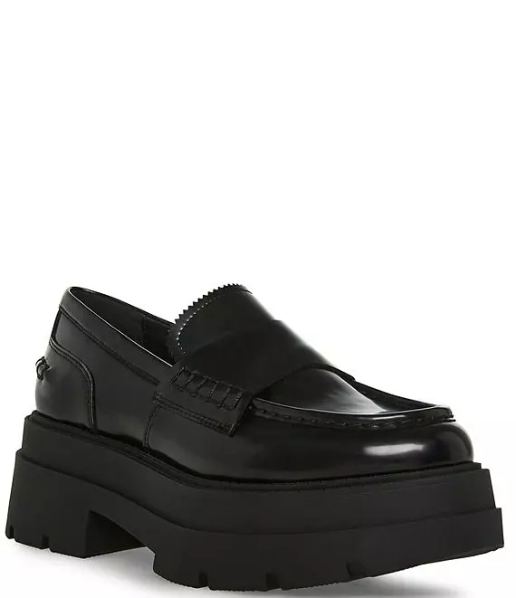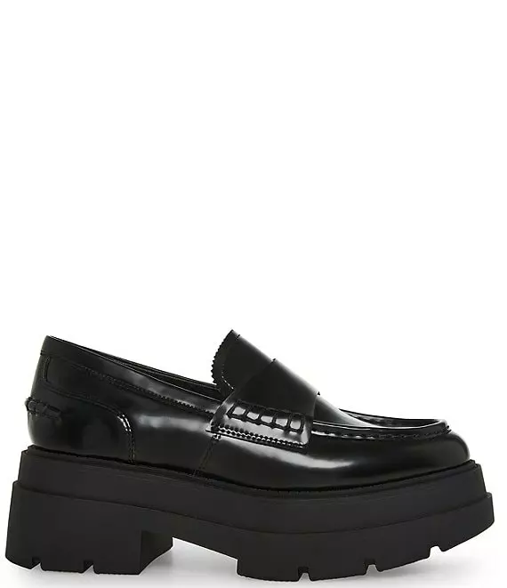 From Steve Madden, the Gaven Leather Platform Penny Loafers feature: