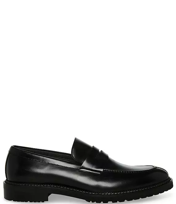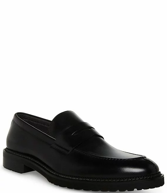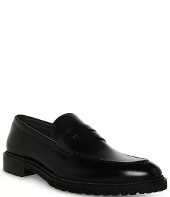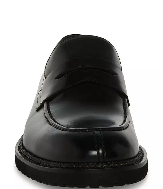 From Steve Madden, the Men’s Saban Leather Lug Sole Dress Penny Loafers feature: