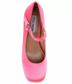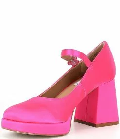 From Steve Madden, the Mingle Satin Block Heel Platform Mary Janes feature:
