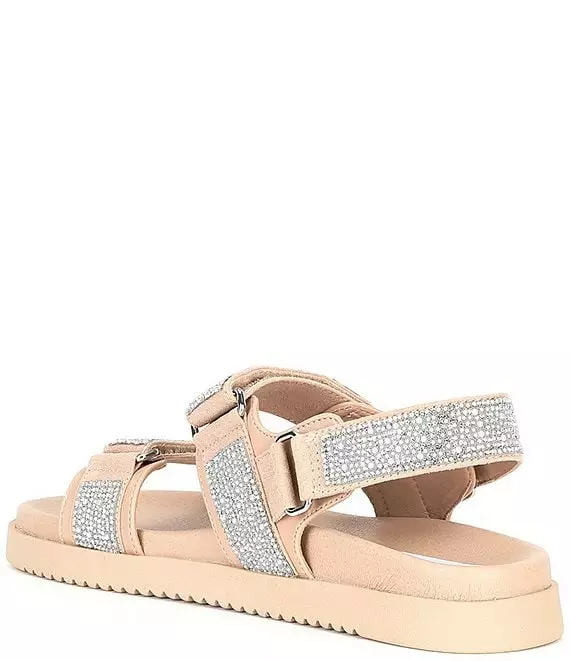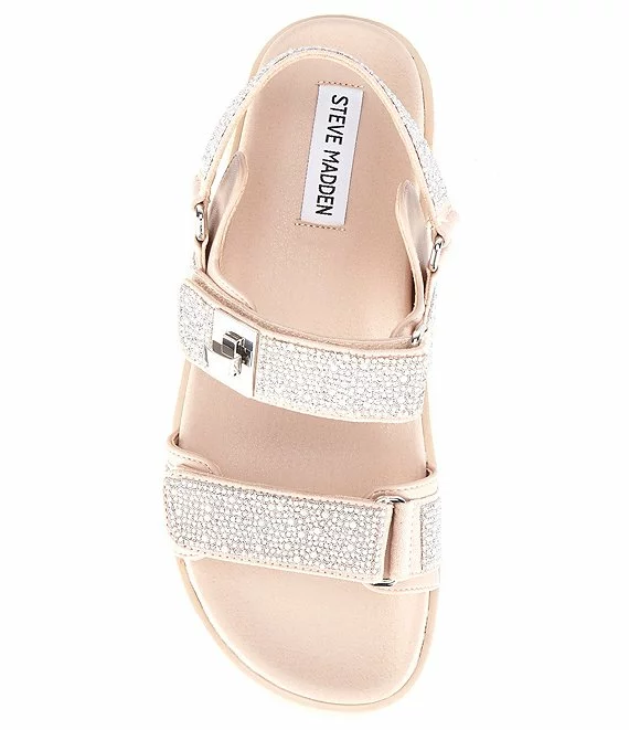 From Steve Madden, the Mona-R Rhinestone Embellished Sandals feature: