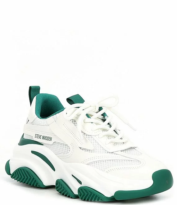 From Steve Madden, the Possession Color Block Chunky Lace-Up Sneakers feature:Â