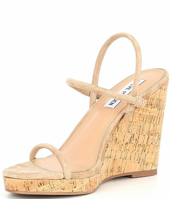 From Steve Madden, the Udell-C Suede Wedge Sandals feature: