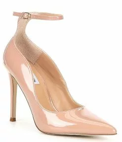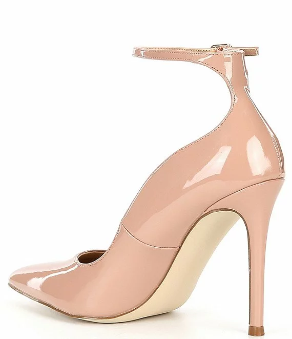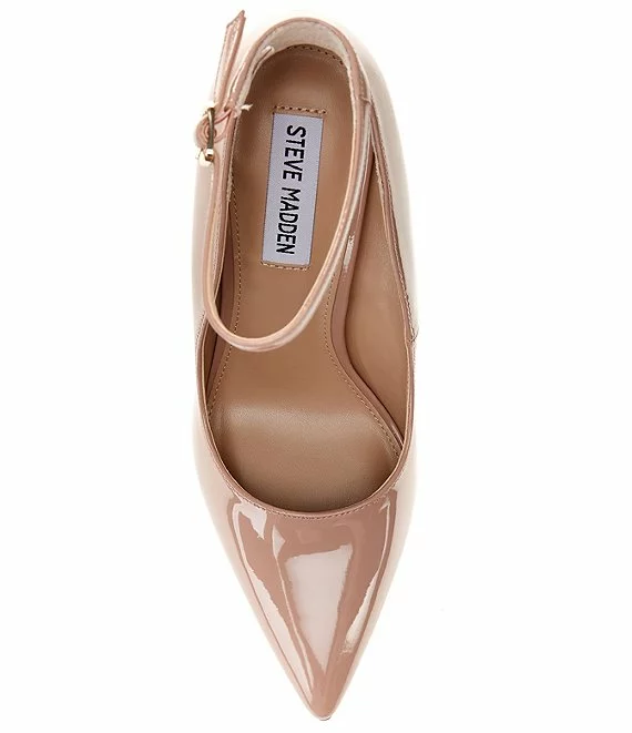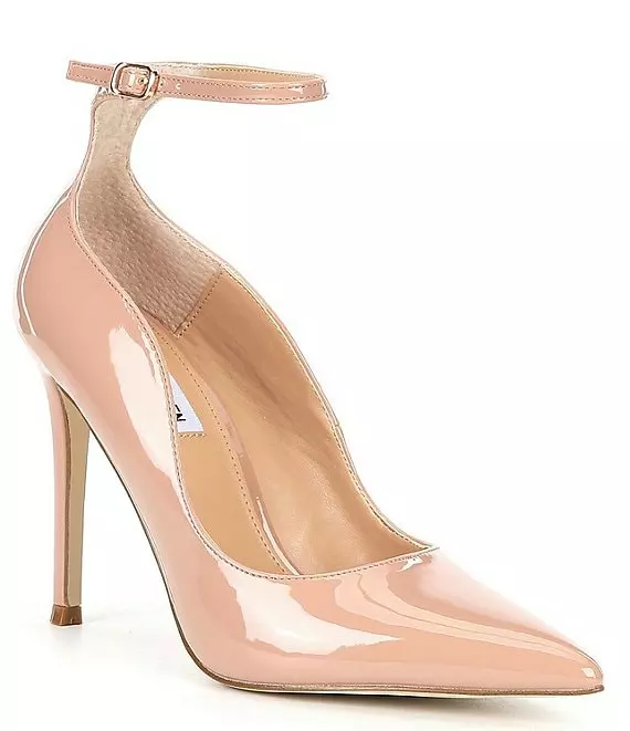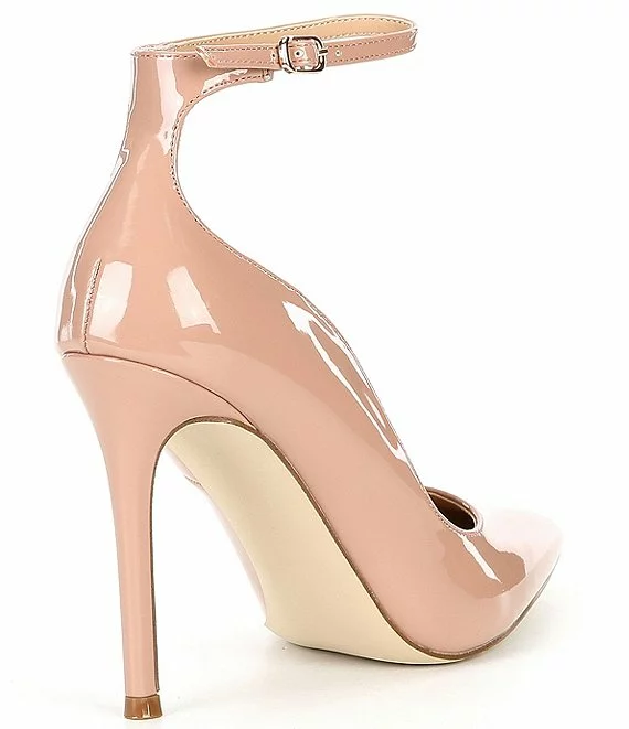From Steve Madden, the Vayda Patent Ankle Strap Pumps feature: